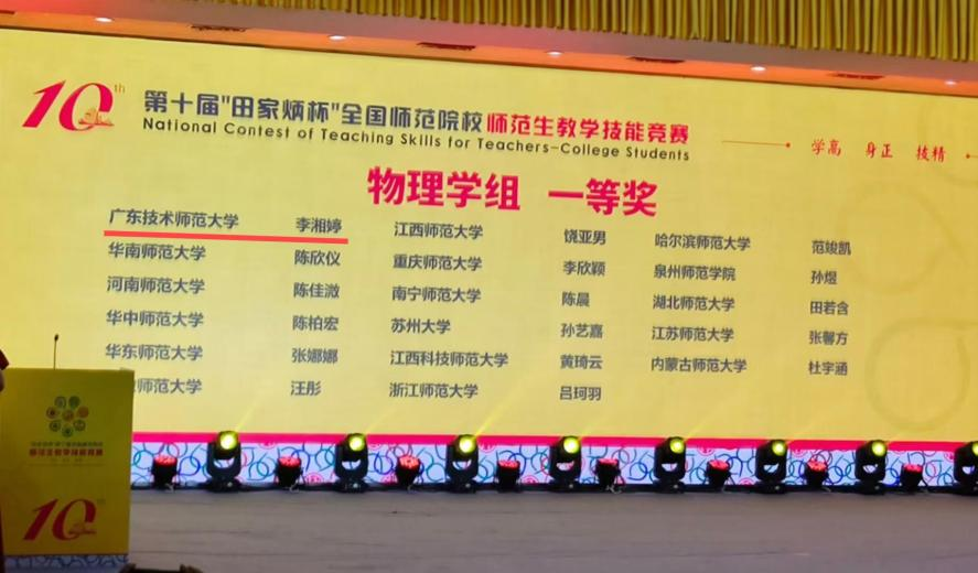 11月29日至12月1日,第十届“田家炳杯”全国师范院校师范生教学技能竞赛在浙江师范大学举行。taptap点点官方网站2021级物理学(师范)专业学生李湘婷获“物理学组”全国一等奖(指导老师:万巍、陈湛旭)、2022级物理学(师范)专业学生黎斯恒获“科学组”全国三等奖(指导老师:陈耿炎、白路),学院首次在国家级师范生教学技能竞赛取得一等奖(最高奖)的突破。