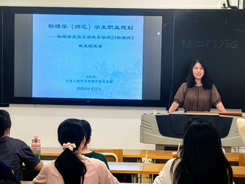 6月11日,物理学系党支部书记陈耿炎、组织兼纪检委员邓寒英、宣传委员刘光辉,赴河源校区,分别给2024级物理学(师范)专业1-3班开展党员导师主题班会。