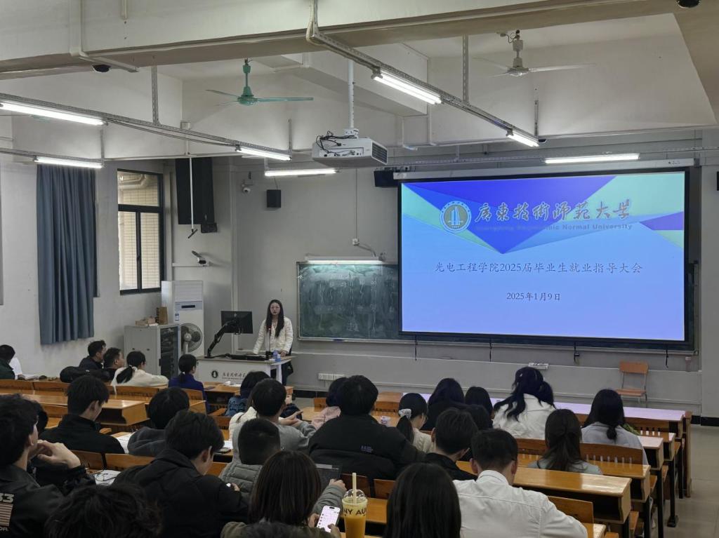 为扎实做好2025届毕业生成长指导和就业服务工作,1月9日下午,taptap点点官方网站于白云校区三教101、113分批举行2025届毕业生大会,光电信息科学院工程专业系主任贾涛、物理学(师范)专业系主任陈耿炎、毕业班班主任、辅导员、2025届全体毕业生参加会议。