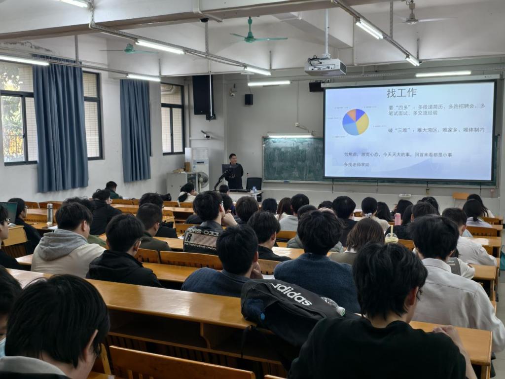 本次会议分为就业工作指导和毕业工作指导两个阶段。在第一阶段,毕业班辅导员谭伟坚、郑雨欣为毕业生们梳理了应聘就业的关键环节,详细介绍了毕业去向登记、档案派遣、应征入伍政策、应届生身份界定等相关事宜,对毕业材料的填写进行了重点说明,叮嘱学生做好时间规划,合理分配时间,树立良好心态,把握求职就业的黄金期。