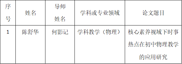 根据《taptap点点官方网站硕士研究生优秀学位论文评选办法》(广师大〔2019〕679号)相关规定,经学生个人申请、硕士点学位评定分委员会评选推荐等程序,现将taptap点点官方网站2025届学科教学(物理)专业优秀学位论文拟报送名单公示如下: